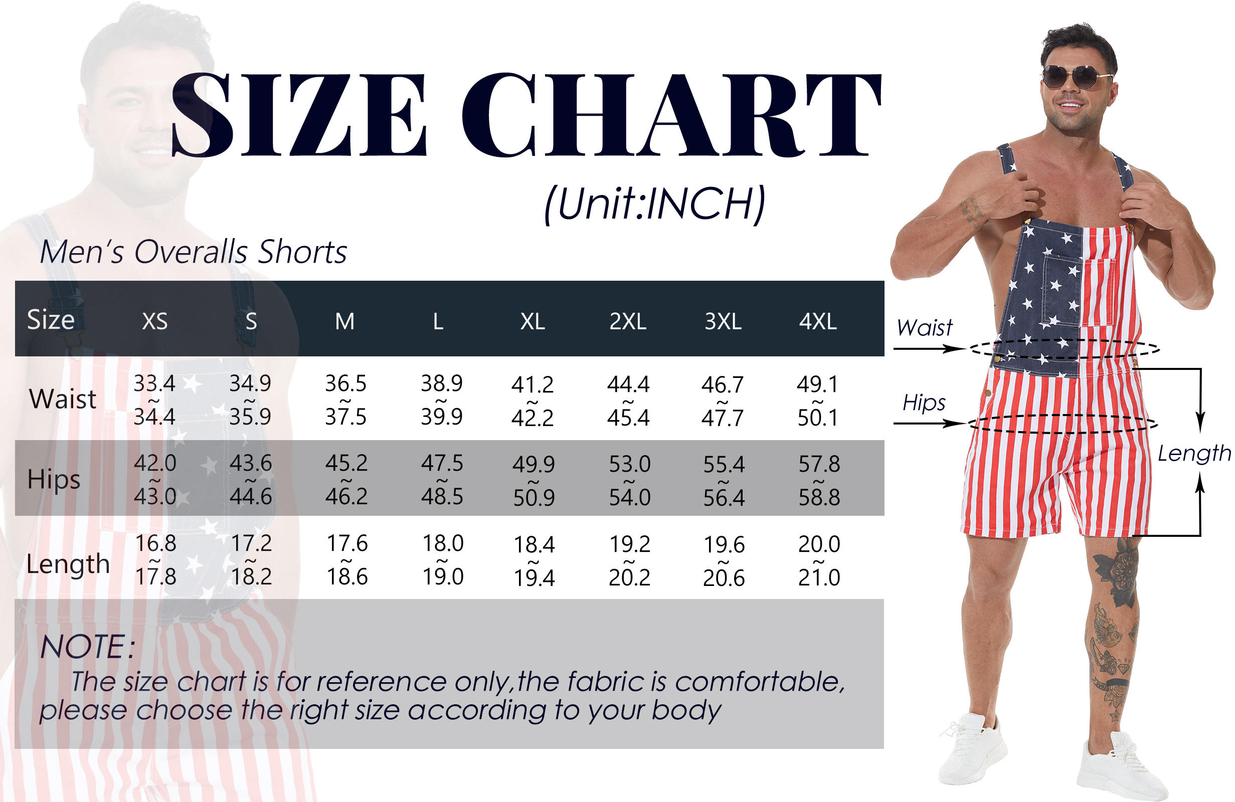 Yuanbang american flag denim overalls have stretch, please refer to our size chart.Cute overall shorts, American flag printed personalized rompers slim fit, great for casual home wear, party, beach, working, club bar, trip vacation and so on.Highlights: Stars and Stripes have never looked better before as an American Woman or men! Wear this patriotic American flag shorts and we’re sure both the guess who won’t want to stay away from you.Good gift to yourself or your other half to make your boyfriend or husband more handsome, It is a great gift for more attractive and timeless. Make you look more vibrant and youthful. It is very suitable for men to wear.Garment care: machine washable. Any question feel free to contact us ,we will reply to you within 24 hours.Care: Yuanbang american flag overalls are suitable for men, choose the size that suits you.